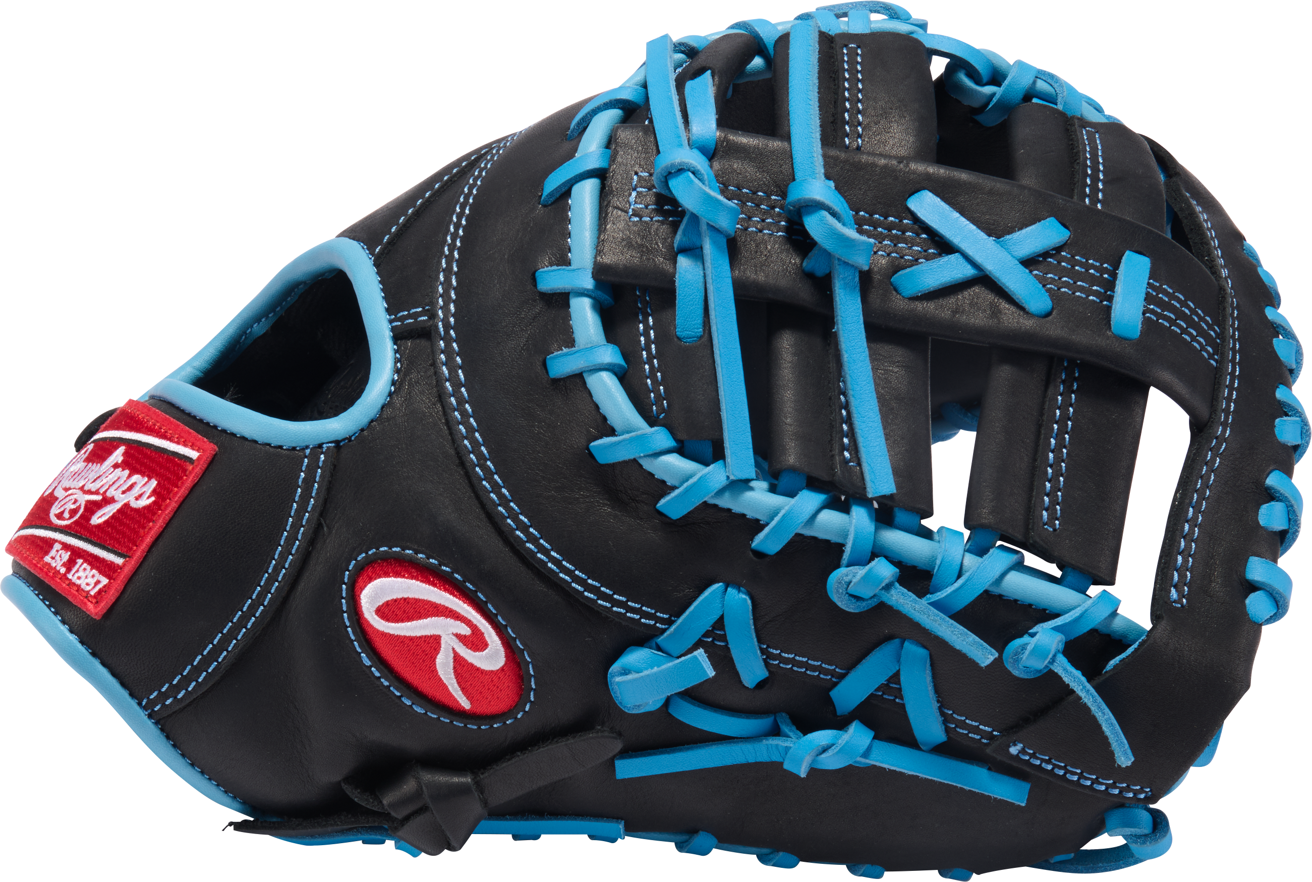 Rawlings R9 13" Baseball First Base Mitt R9DCT10BCB is a rugged, game‑ready first base glove designed for players who want dependable performance right out of the box. Crafted from premium full‑grain leather in a sleek Black/Columbia Blue colorway, this 13" mitt features a pro‑inspired DCT (Deep Catching Technology) pattern and a secure Pro H‑Web that helps you scoop throws with confidence and transfer the ball quickly. Built to be nearly game‑ready with minimal break‑in required and equipped with comfort‑enhancing padding, it’s ideal for youth and adult first basemen seeking durability, comfort, and control on every play.