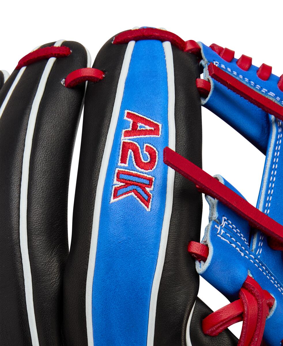 The 2026 Wilson A2K 11 3/4" MB1175 Infield Baseball Glove WBW1035001175 represents the signature game model of Los Angeles Dodgers superstar Mookie Betts, part of Wilson's exclusive Fall 2025 limited series collection. This professional-grade shortstop glove features striking black and royal blue Pro Stock Select leather construction, designed to meet the demanding needs of elite defensive players who require exceptional reach and versatility. Handcrafted by master artisans in Japan through an intensive 18-hour process, this game model delivers the same specifications used by one of baseball's most dynamic players, combining premium materials with innovative construction techniques for superior performance on the diamond.