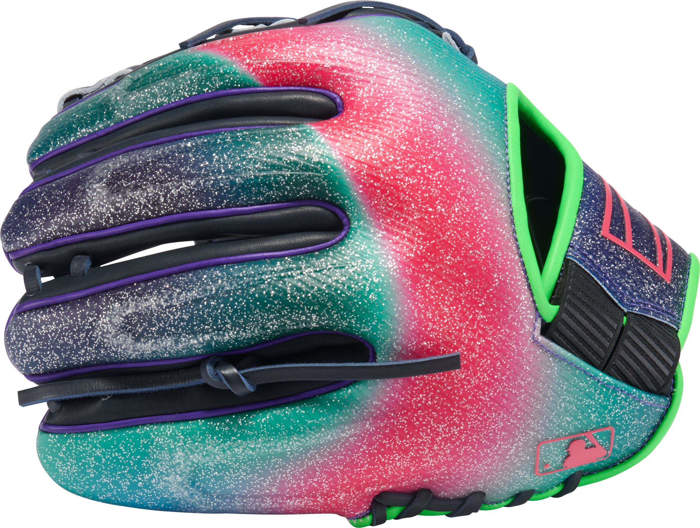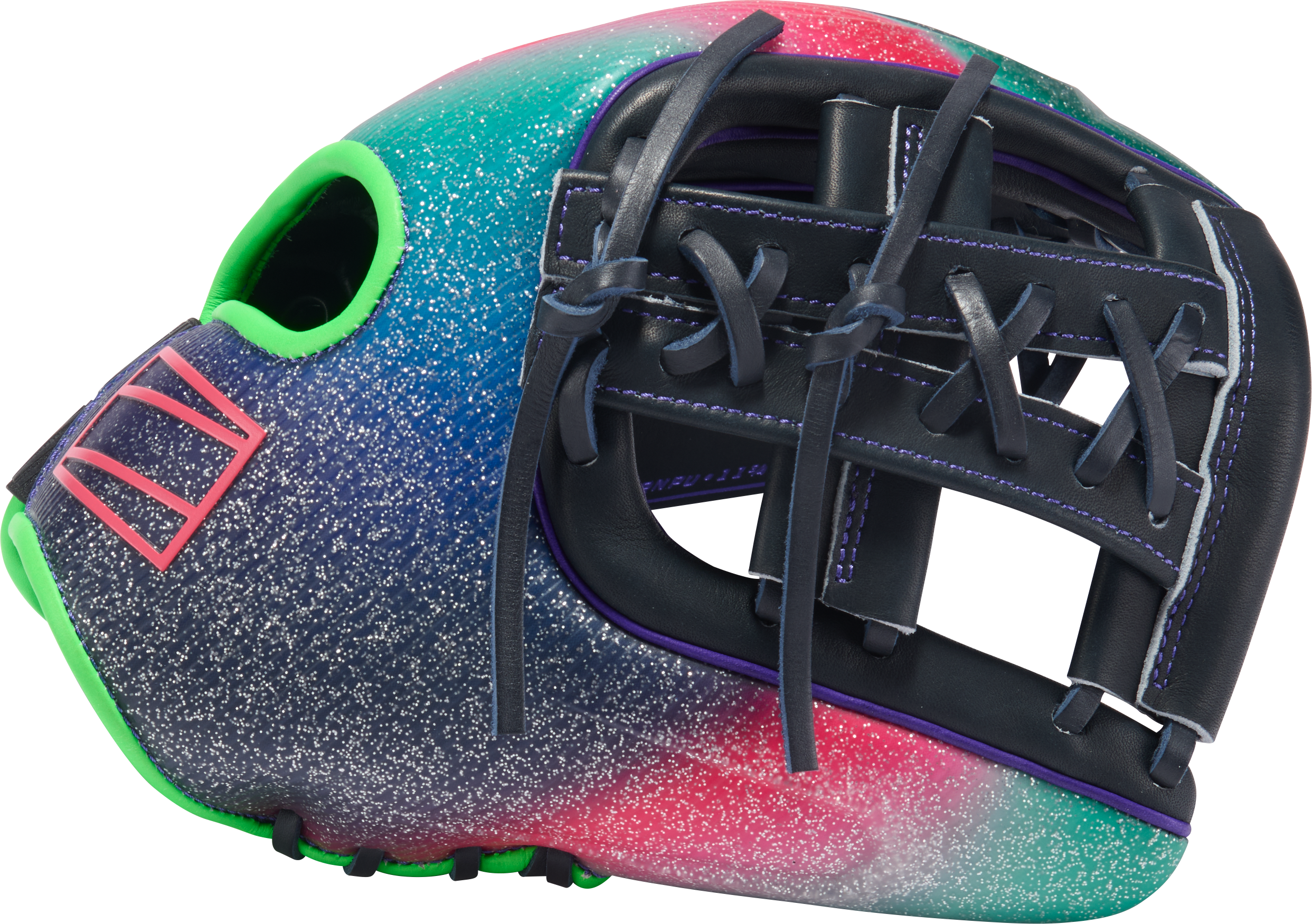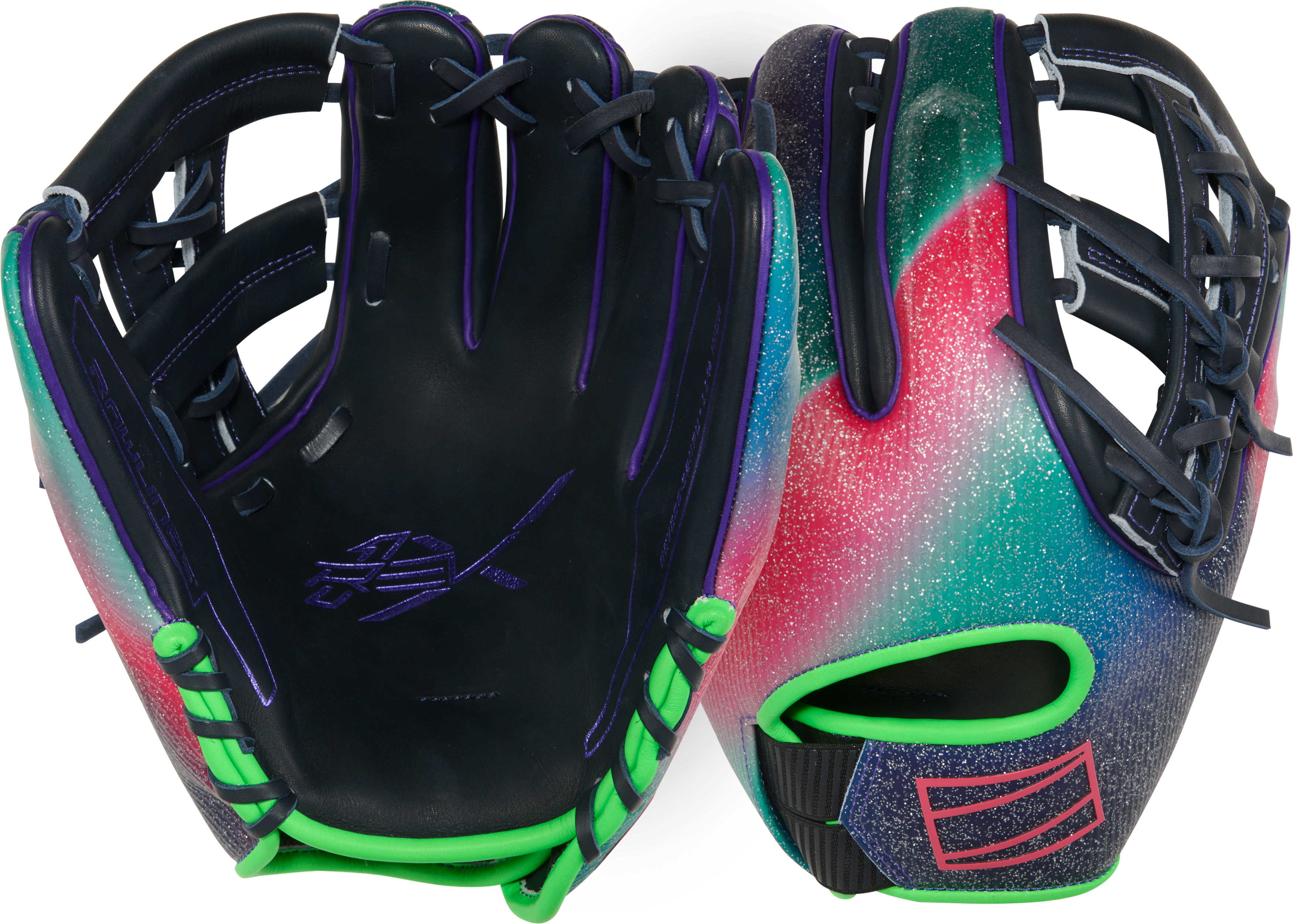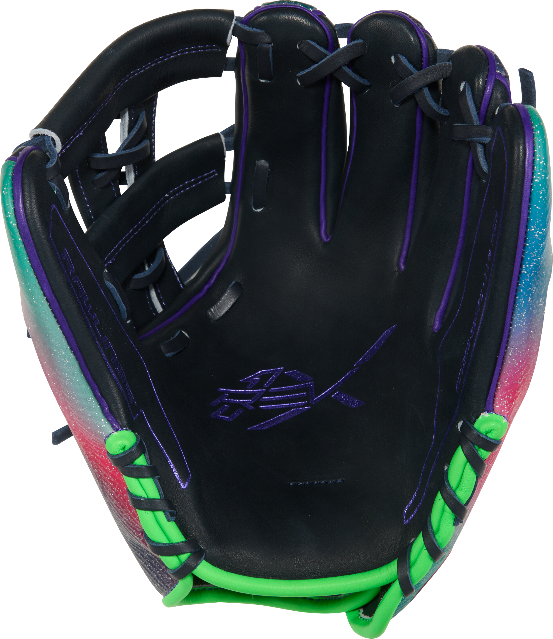 The Rawlings REV1X 11 3/4" Infield Baseball Glove REV20532 is built for infielders who want explosive speed, bold style, and elite-level control. Featuring a striking multi-color gradient design with black shell, neon green accents, purple detailing, and speckled red-to-teal back, this glove stands out the moment it hits the field. Beyond the eye-catching look, it delivers a lightweight feel, structured pocket stability, and lightning-fast transfers that help you play aggressively and confidently on every ground ball.