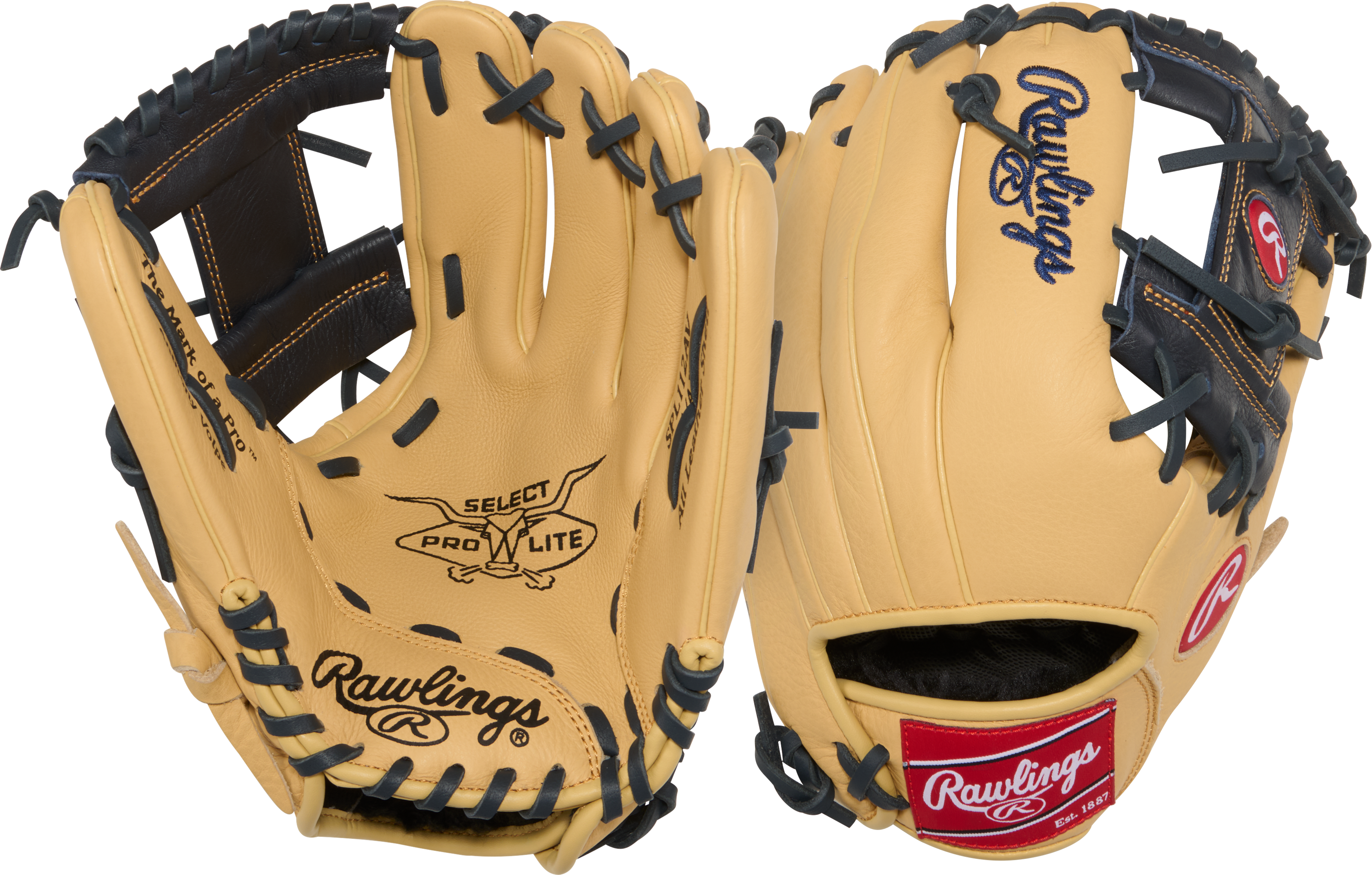 The Rawlings Select Pro Lite Anthony Volpe Youth 11 1/4" Baseball Glove SPL112AV delivers a youth‑friendly glove built for infielders who want a professional‑inspired feel right out of the box. Designed with a lightweight leather shell and Youth Pro Taper fit, this glove balances easy break‑in with responsive performance on every play. Its Pro I web and cushioned lining enhance control and comfort during practice and game action, while palm and finger padding help reduce impact shock for developing players. With a classic Camel/Navy look and quality construction, this glove supports confident fielding and quicker ball transfers for aspiring baseball stars. Comes with a 1‑Year Manufacturer Warranty.