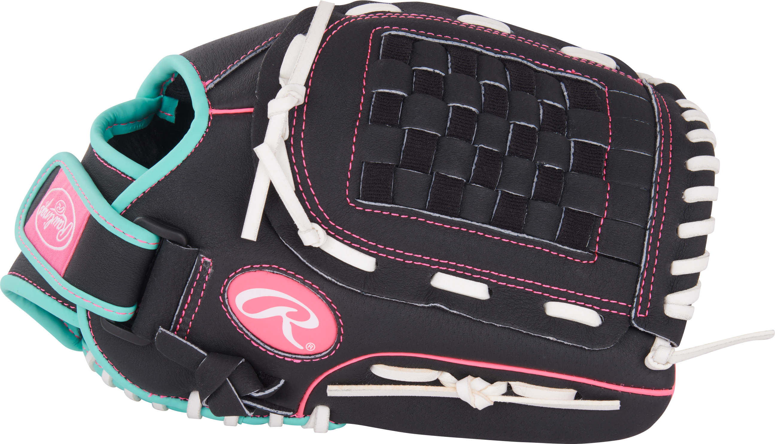 Rawlings Sure Catch Youth Series 12 1/2" Softball Glove SCSB125BMP with durable leather and easy closing pocket, perfect for young players.