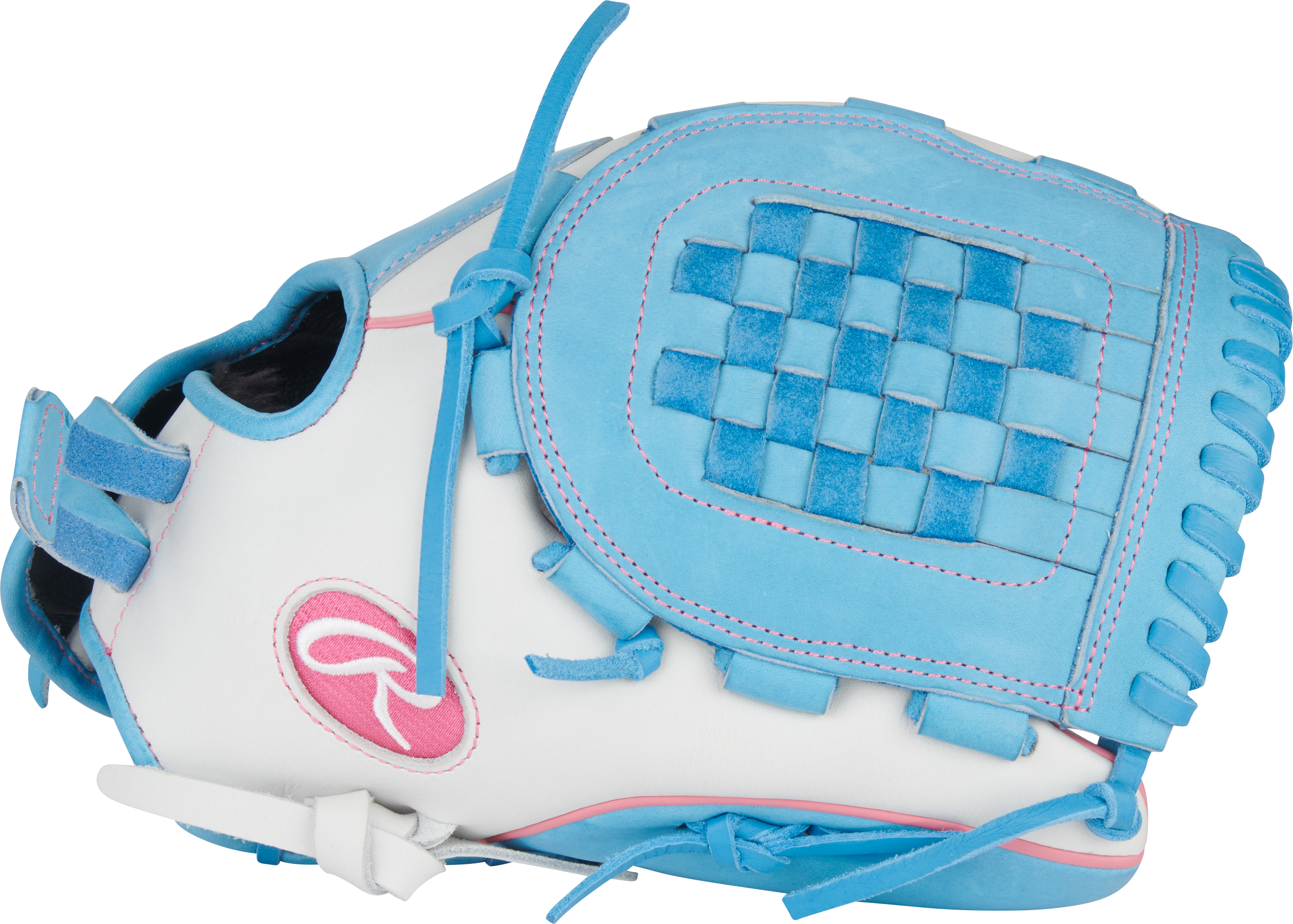 White and Columbia Blue Colorway: Provides a standout look on the field while maintaining classic Rawlings aesthetics.