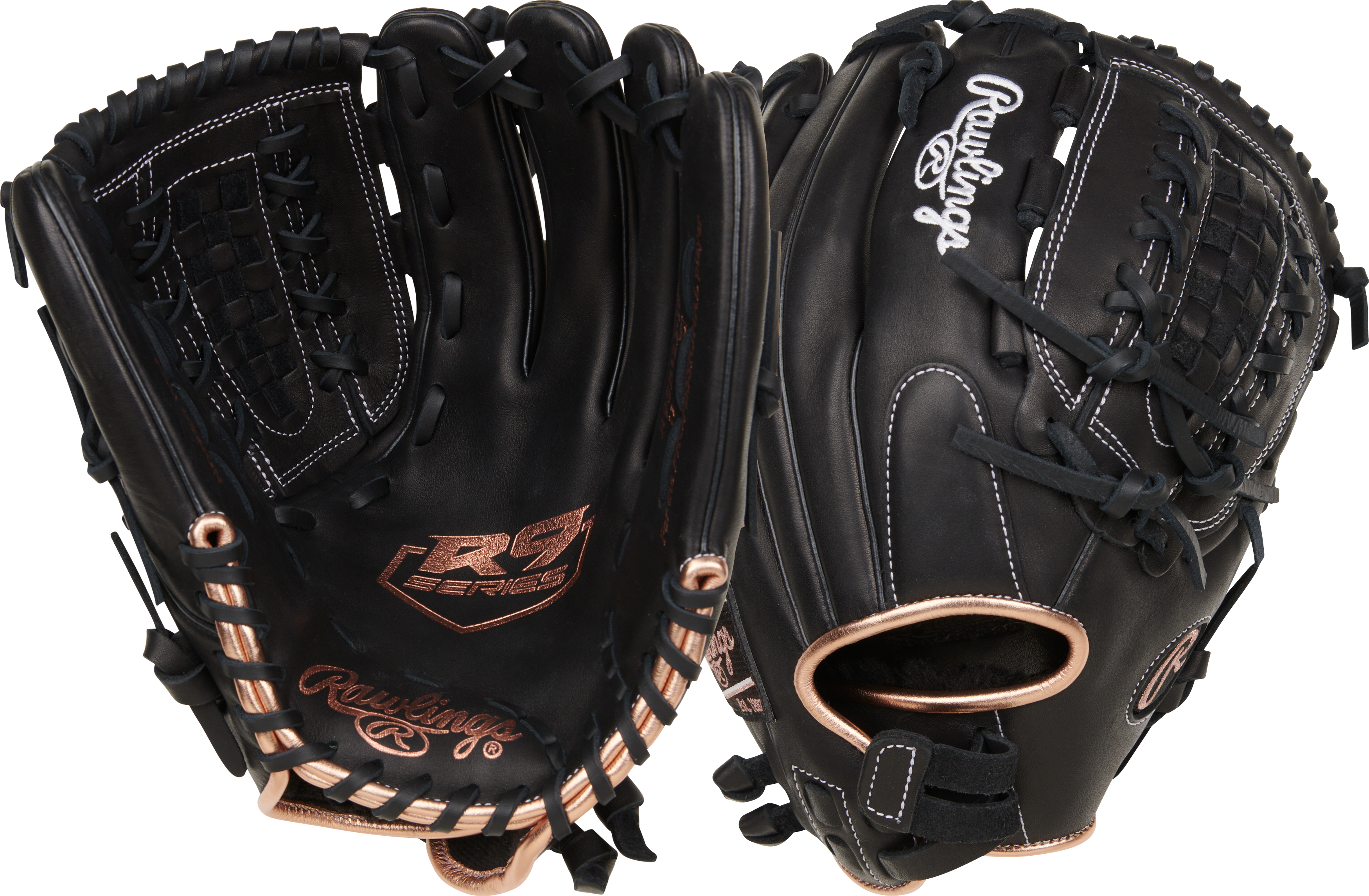 The Rawlings R9 12 1/2" Fastpitch Outfield Softball Glove RR9SB125-18B brings pro‑level performance to youth and high school players with premium full‑grain leather construction and a nearly game‑ready feel right out of the box. Designed for players who demand reliability, control, and comfort in the field, this glove delivers a deep pocket, secure catch, and cushioned protection that helps elevate play season after season. Backed by a 1‑Year Manufacturer Warranty, the R9SB125‑18B combines durability and comfort in a sleek black design with rose gold accents that stands out on the diamond.