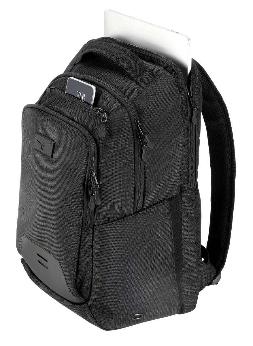 The Mizuno Front Office 24 Backpack 360328 is built for coaches, athletes, and professionals who move seamlessly between the office, classroom, and field. With a padded 17-inch laptop sleeve, multiple storage zones, and a water-resistant valuables pocket, this backpack keeps essential items protected and organized throughout a busy day. Adjustable padded shoulder straps, a cushioned back panel, and a durable 1280D polyester shell deliver long-lasting comfort and reliability. Whether you're coaching, traveling, or working, this backpack provides the versatility and durability you need. Comes with a 1 Year Manufacturer Warranty.