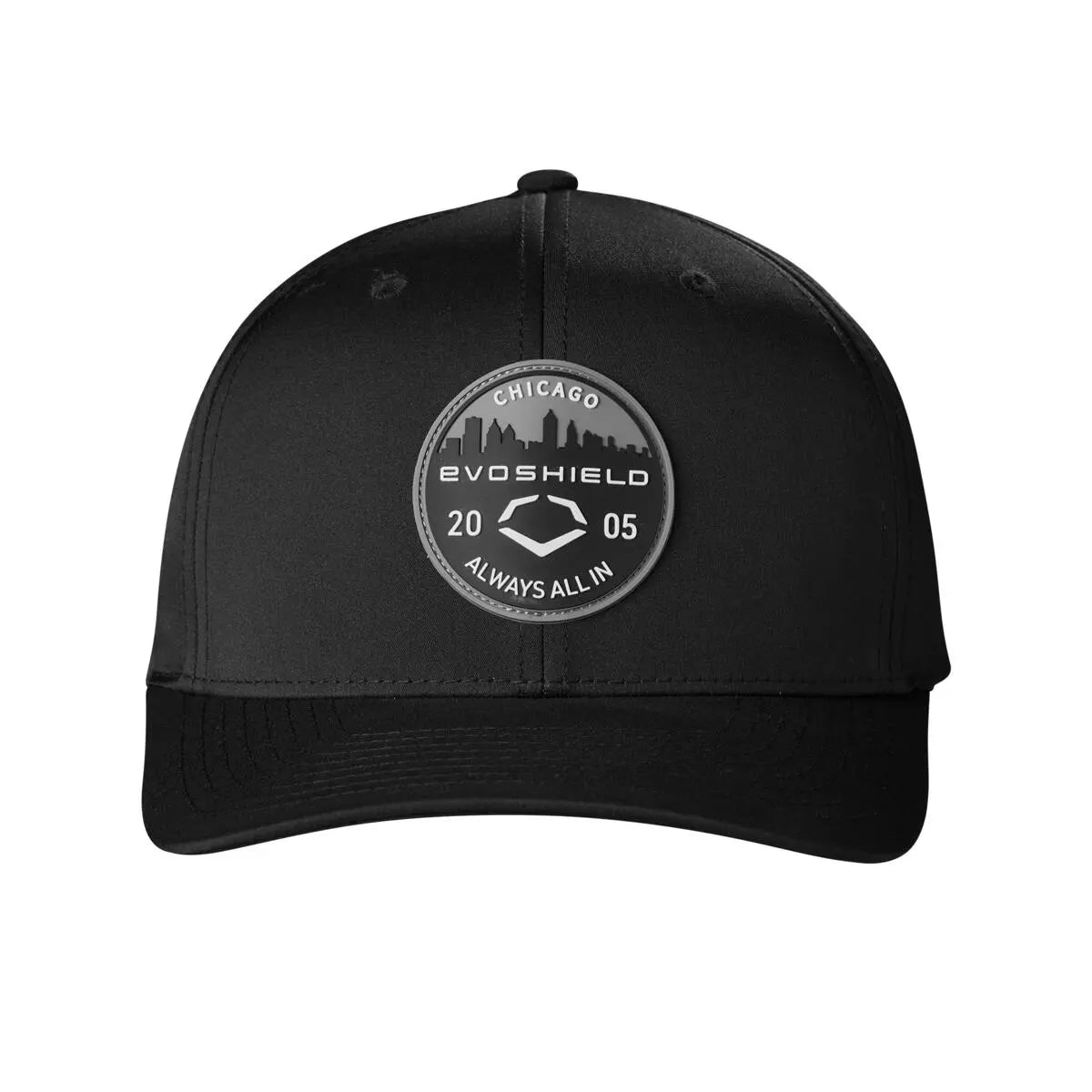 • Always All In Black Circle Patch: The embroidered patch highlights the Chicago skyline, celebrating EvoShield’s headquarters while adding a sleek and modern design element.