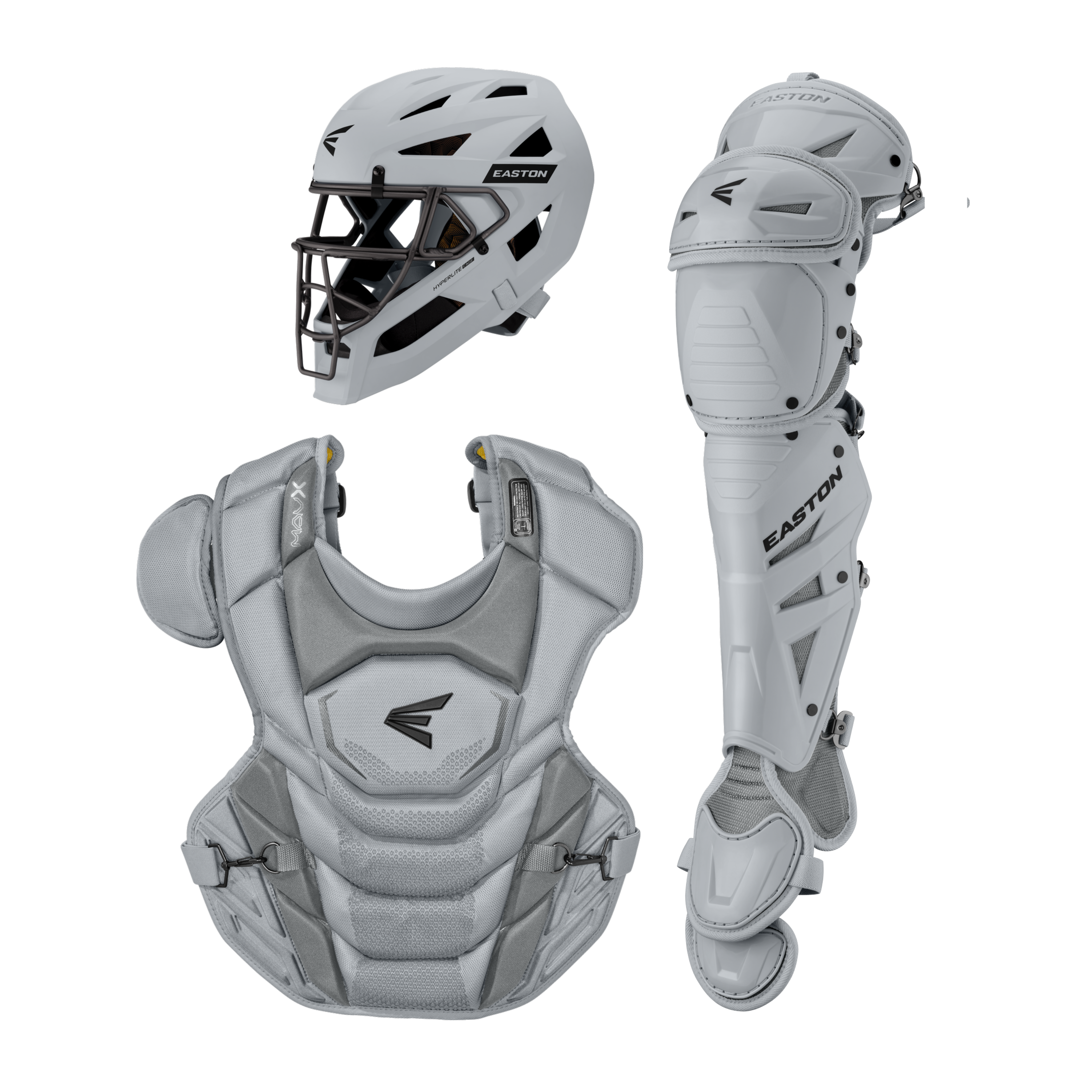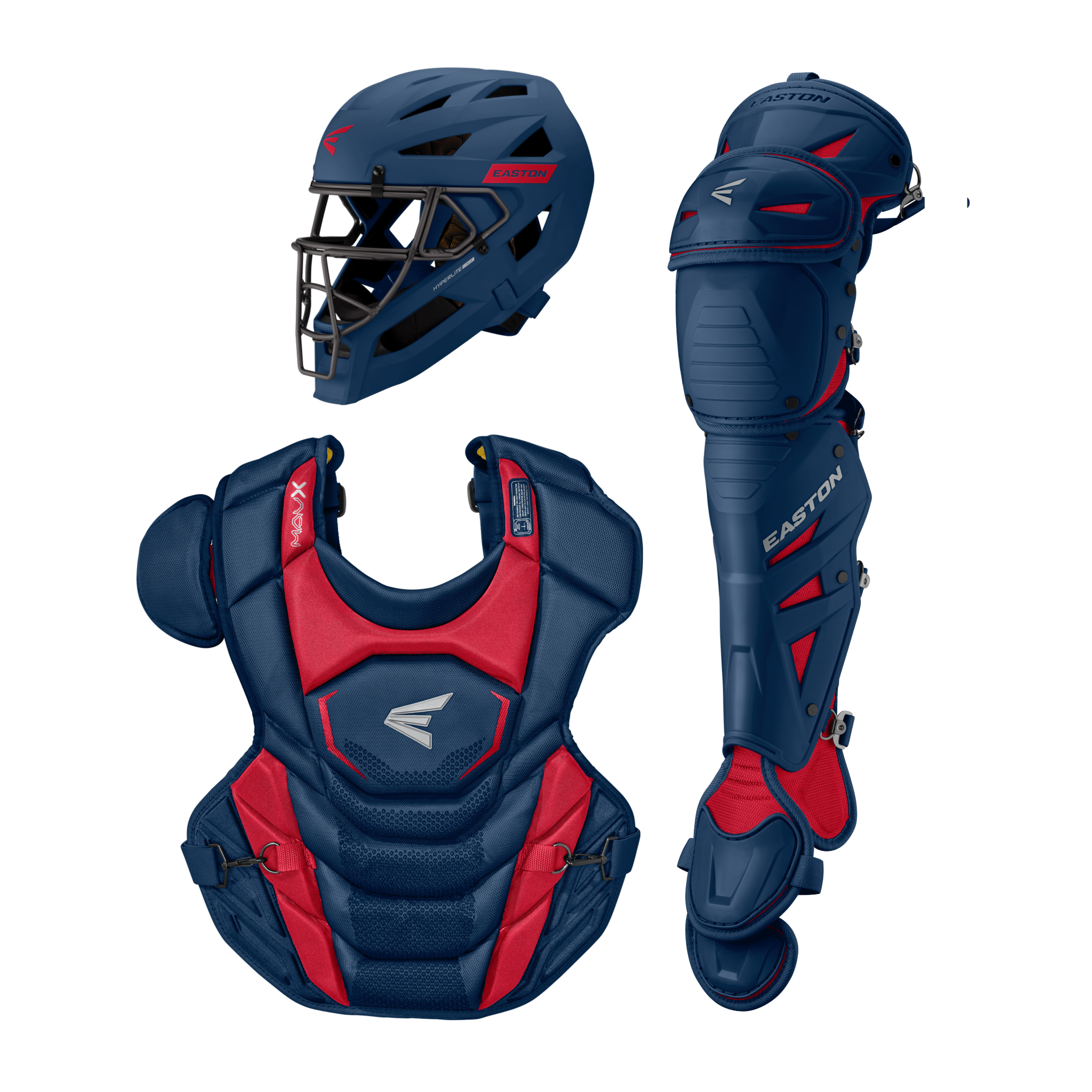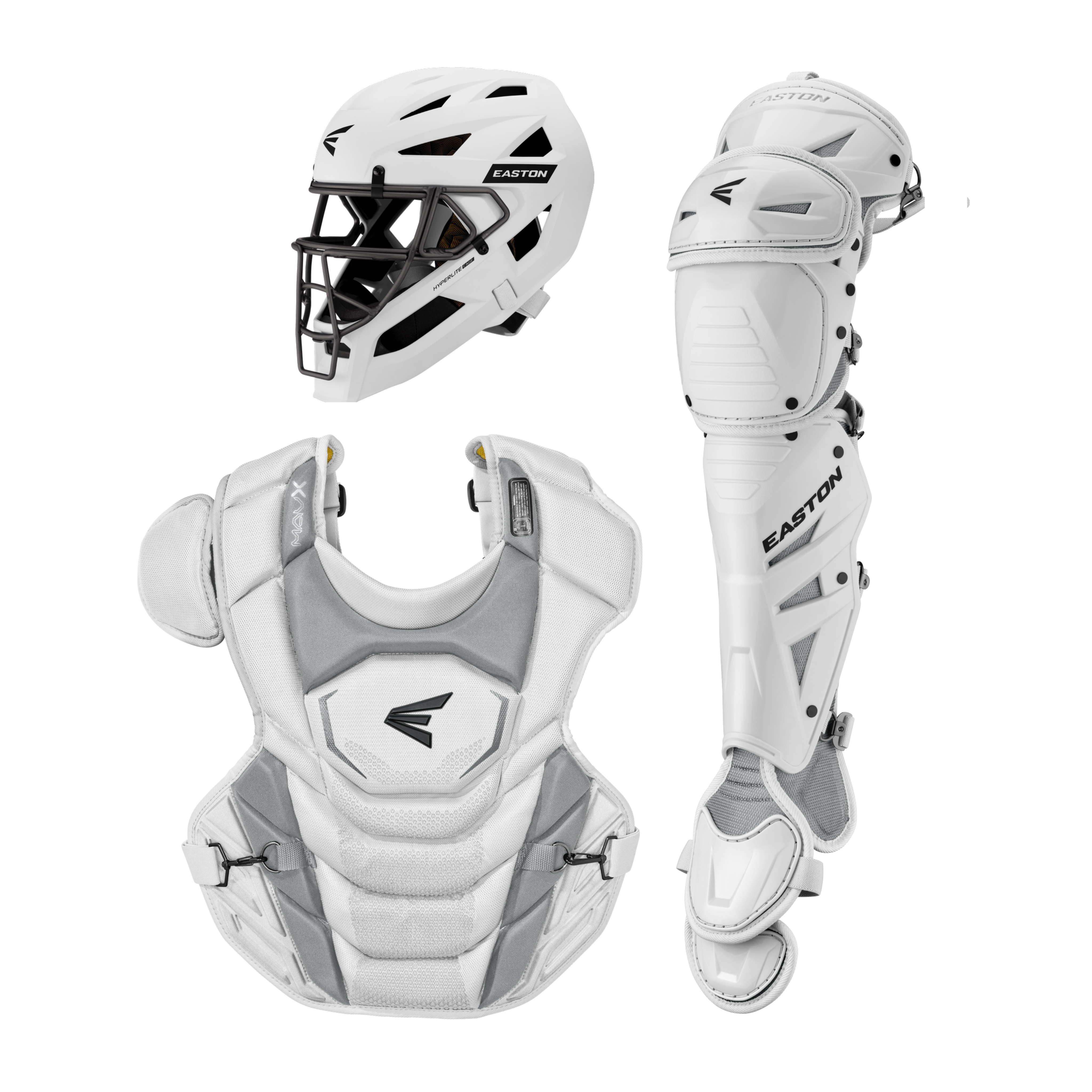 El kit de receptor Easton MAV X Medium (MAVXKITM) incluye un casco con máscara de aleación Hyperlite, protector de pecho con certificación Commotio Cordis de 15.5" y protectores de pierna Multi-Hinge Pro de 15" diseñados para jugadores intermedios de 12 a 15 años que desean protección de élite y movilidad sin restricciones detrás del plato.