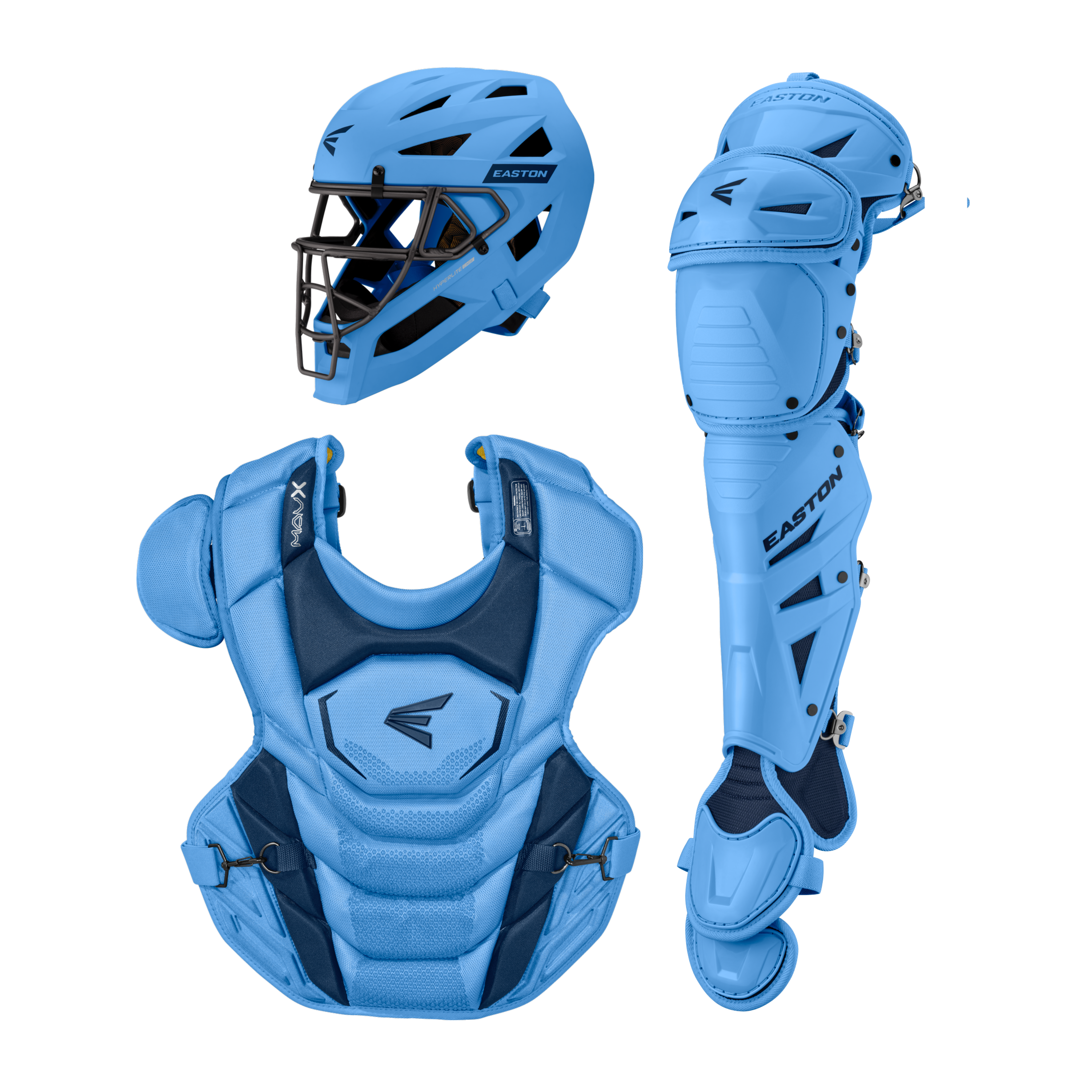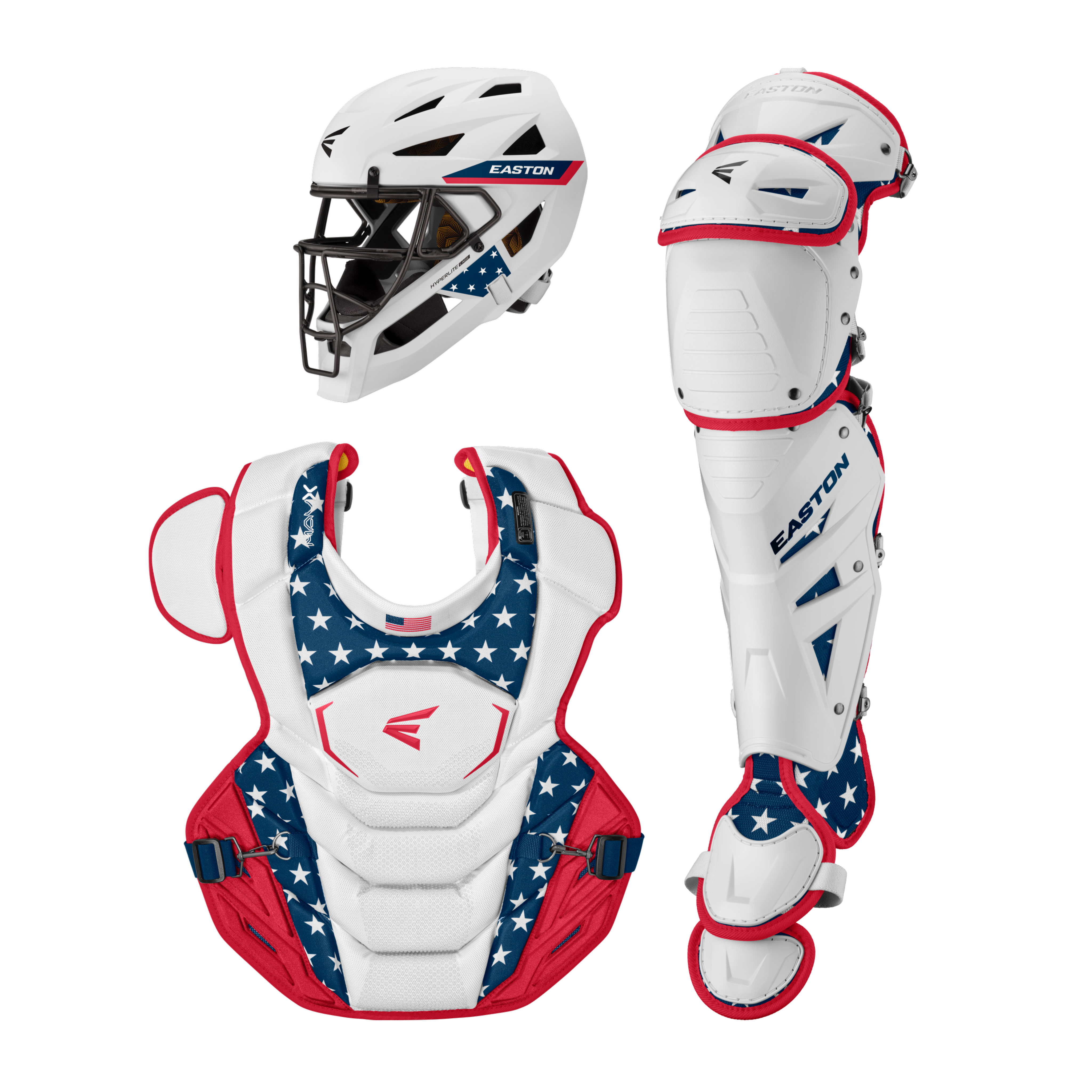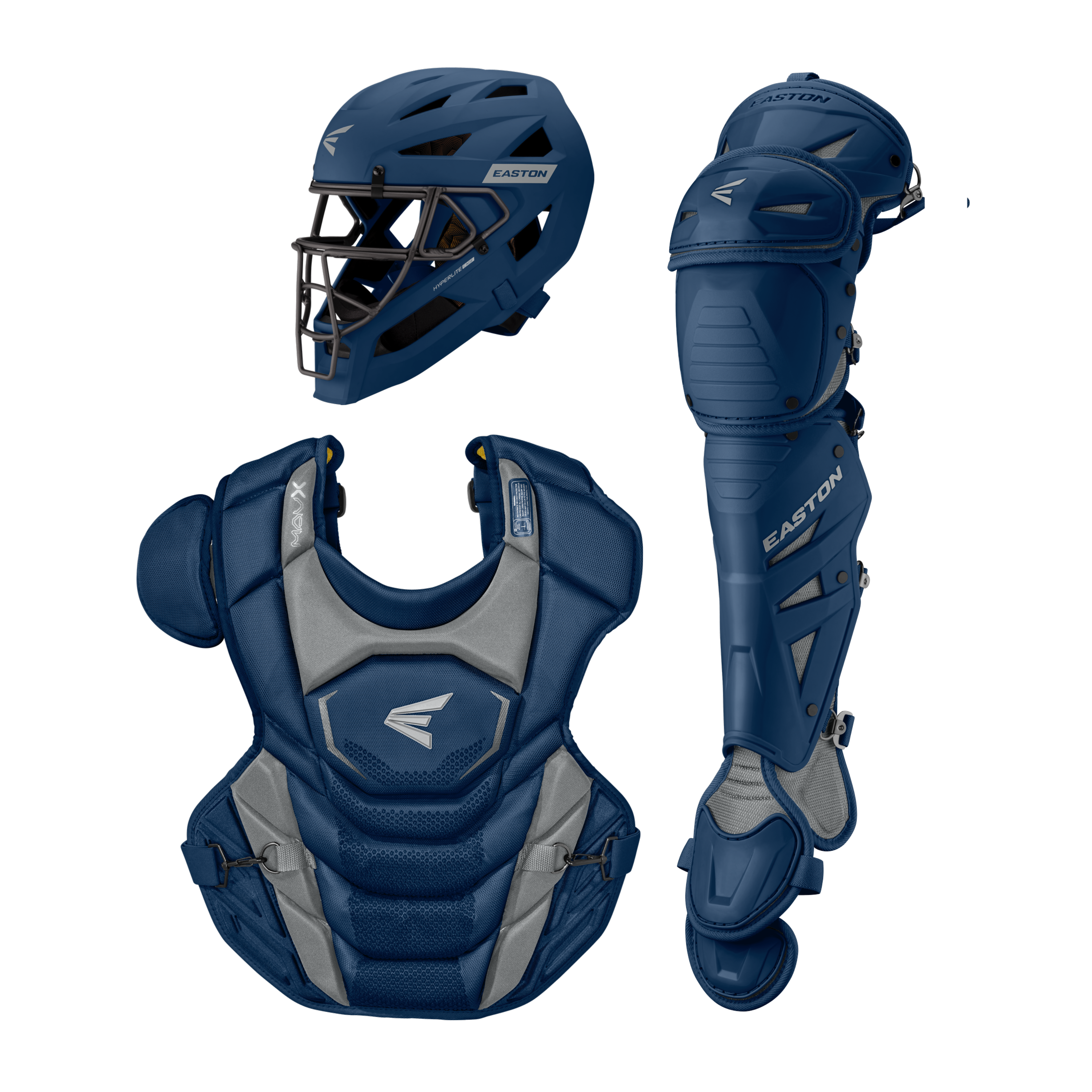 El kit de receptor Easton MAV X Medium (MAVXKITM) incluye un casco con máscara de aleación Hyperlite, protector de pecho con certificación Commotio Cordis de 15.5" y protectores de pierna Multi-Hinge Pro de 15" diseñados para jugadores intermedios de 12 a 15 años que desean protección de élite y movilidad sin restricciones detrás del plato.