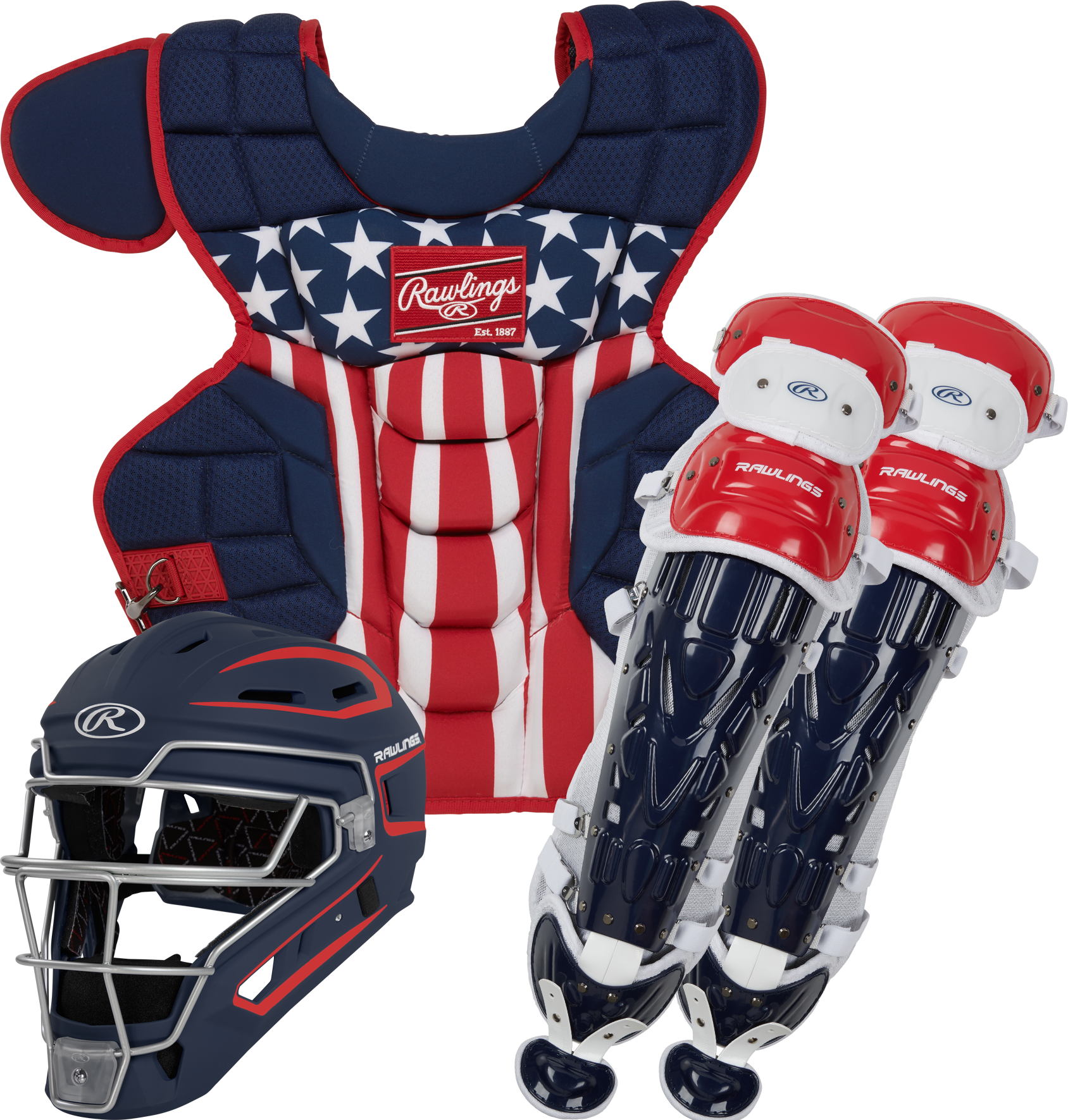 • Disponible en siete combinaciones de colores listas para el equipo, incluida la combinación de colores patrióticos azul marino/escarlata/blanco de EE. UU., para que cada pieza del equipo de receptor de su jugador coincida y se vea tan nítida como juega en cualquier diamante.