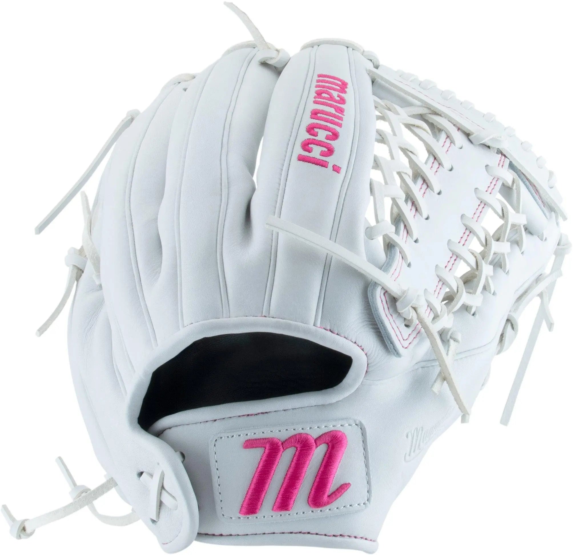 Introducing the 2025 Marucci Magnolia 12 1/2" T-Web Fastpitch Softball Glove (MFG3MG47A6FP)—the perfect glove for fastpitch players demanding top-tier performance and comfort. Equipped with Marucci's M Type fit system, this glove includes integrated thumb and pinky sleeves with enhanced thumb stall cushioning for a secure, comfortable fit. Crafted from premium Japanese-tanned steerhide leather, the Magnolia provides long-lasting durability and structure, perfect for players who require top performance on the field. The Pro-style patterns, tailored specifically for fastpitch, feature a dual-wide shape and medium depth, offering superior fit and control. Inside, the glove is lined with extra-smooth sheepskin and high-density foam cushioning for added comfort and protection during long innings. The moisture-wicking mesh wrist lining with dual-density memory foam padding ensures dryness and comfort, while the professional-grade rawhide laces provide maximum tear resistance. Available in a right-hand throw, this glove is designed for versatility and is perfect for pitchers, infielders, and outfielders seeking elite performance on the field.