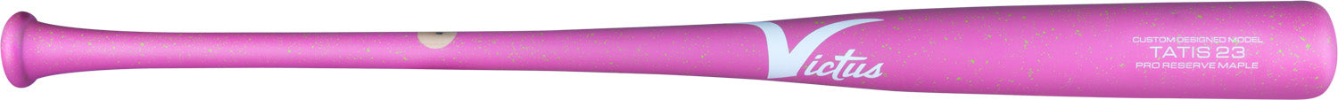 The 2025 Victus TATIS23 Pro Reserve Maple Wood Baseball Bat (VRWMFT23) is designed for players who want to bring the explosive energy and power of Fernando Tatis Jr. to the plate. Engineered with an end-loaded design, this bat is ideal for power hitters looking to make massive contact and send the ball deep. Made from premium maple wood, known for its strength and durability, the TATIS23 offers a solid feel and exceptional performance. The flared knob and medium handle provide a comfortable grip and control, while the large barrel maximizes the sweet spot, allowing for more powerful contact. Handling similarly to i13 or AP5 bats, the TATIS23 delivers added bat whip for increased speed through the zone. Each Pro Reserve bat undergoes rigorous testing and features Victus' ProPACT finish, enhancing durability and performance. The TATIS23 is also ink dot certified, meeting Big League standards and ensuring quality. With a 60-day warranty and proudly made in the USA, the TATIS23 is perfect for serious players who want to dominate the game like Fernando Tatis Jr.