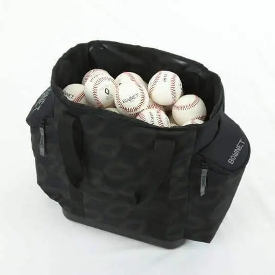 The Bownet Baseball/Softball Ball Bag BN-BALL BAG is designed to keep you organized and ready for action, whether you're on the field, at the rink, or out for practice. This high-capacity bag can hold up to five dozen baseballs or three dozen softballs, making it perfect for games or practice drills. The durable molded bottom ensures the bag stays sturdy on any surface without ripping, while the two side accessory pockets provide extra storage for gloves, water bottles, or additional balls.