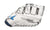 The Ax Suede microfiber lining provides unmatched comfort and long-lasting performance. The single post web with X lacing delivers excellent stability, making this mitt ideal for first base players who demand reliability and style. Its sleek white-and-blue colorway and professional-grade metallic rawhide laces ensure you stand out on the field while performing at your best.