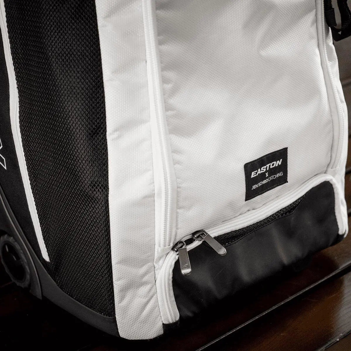 With dimensions of 28.5”L x 16”W x 12”D, the Easton Jen Schro Catcher’s Bag offers ample space and thoughtful storage solutions for all catcher’s gear, making it an essential tool for dedicated players.
