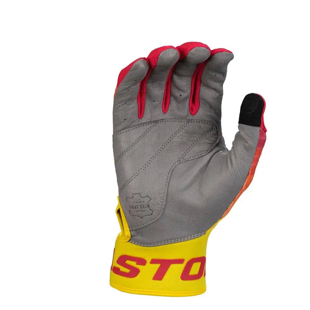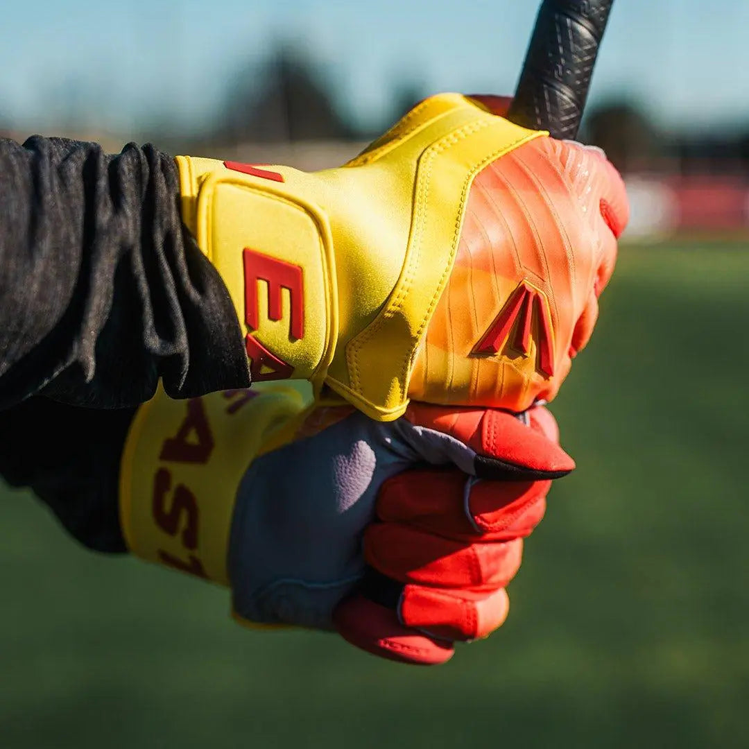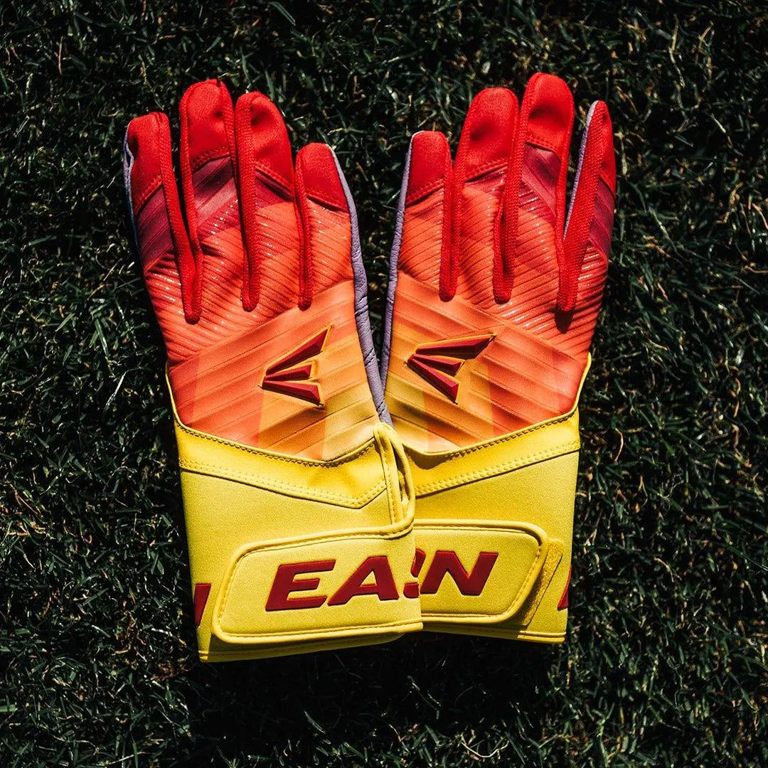 Unleash your full potential at the plate with the Easton Walk-Off Ethos Fire Baseball/Softball Batting Gloves! Designed for players who demand durability and performance, these gloves feature a tackified full-grain leather palm for a thicker, more reliable hitting experience. Reinforced with a double-layer leather palm, these gloves are built to last, offering maximum durability even during intense gameplay. For stability and comfort, the ergonomic one-piece neoprene cuff, thumb, and wraparound strap deliver a secure fit, complete with the signature Easton logo.