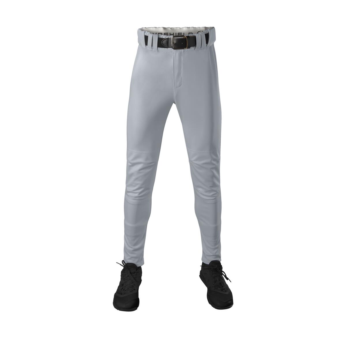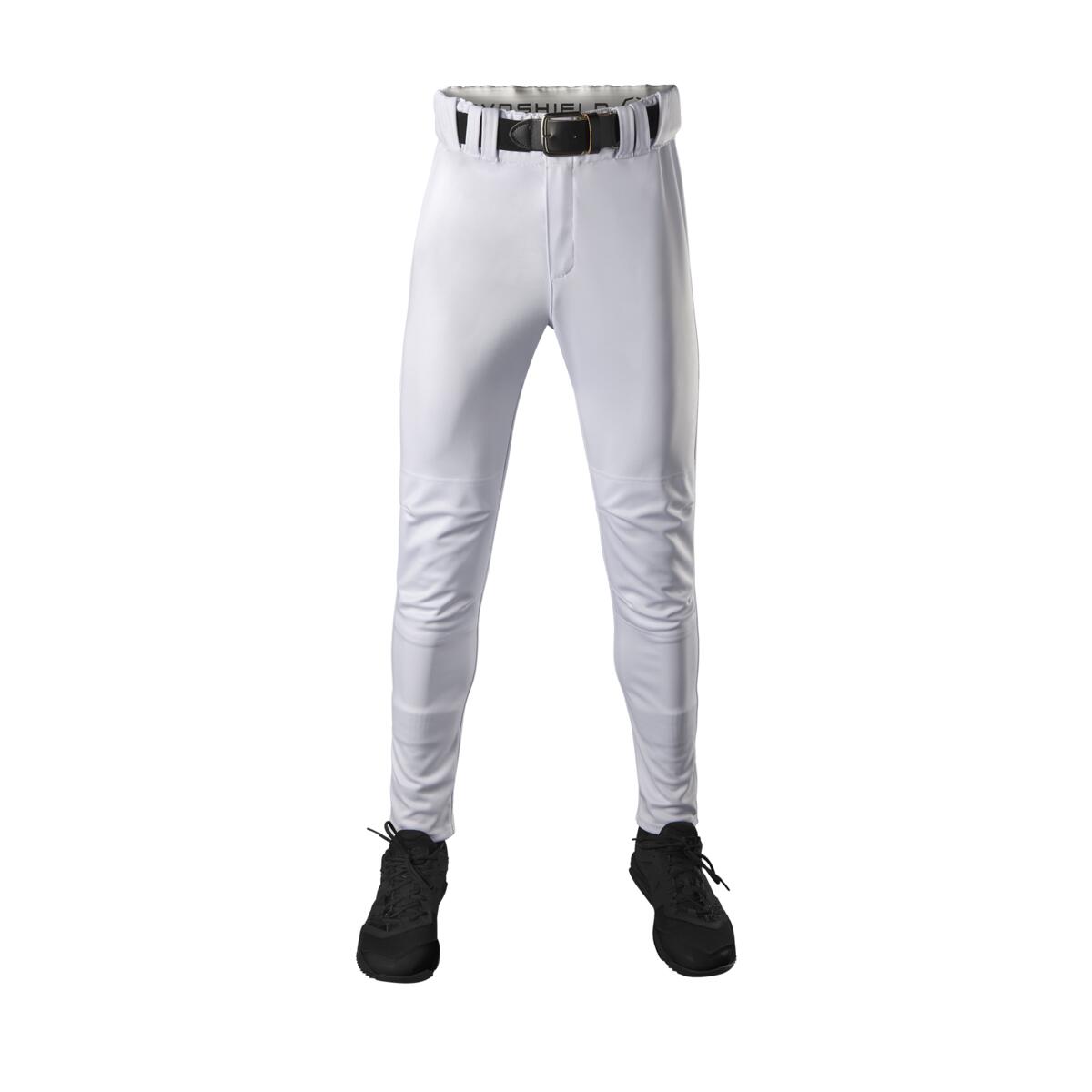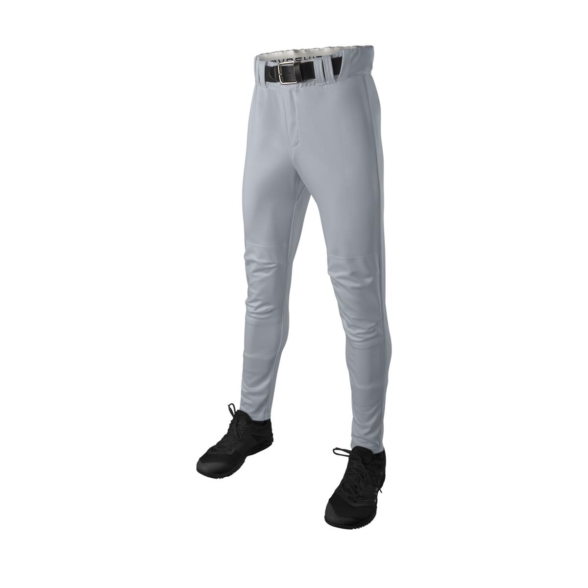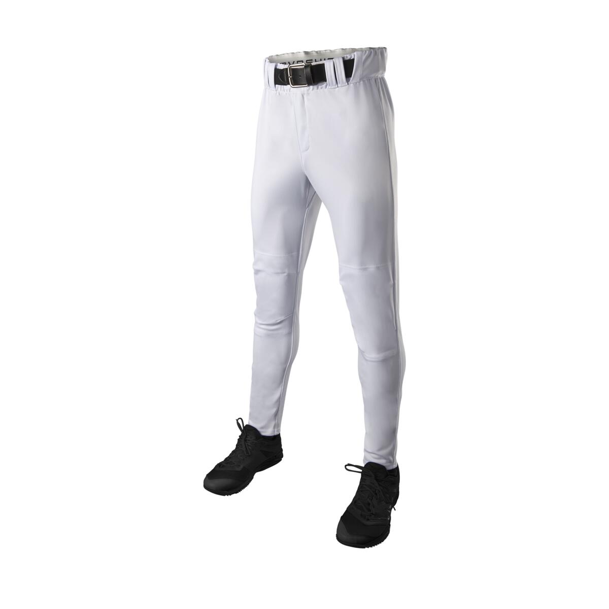 Adult Model: WB60412 Youth Model: WB60413 Brand: EvoShield (Wilson) Material: 100% Polyester Fit: Tapered calf-hugging fit Moisture Management: Moisture-wicking technology Breathability: Ultra-breathable fabric construction Knee Construction: Double-layered for durability Back Pockets: Set-in back pockets Waistband: Elastic gripper waistband Design Features: Precision darts at knees Colors Available: White, Gray, Black Activity: Baseball and Softball Style: Modern tapered athletic cut