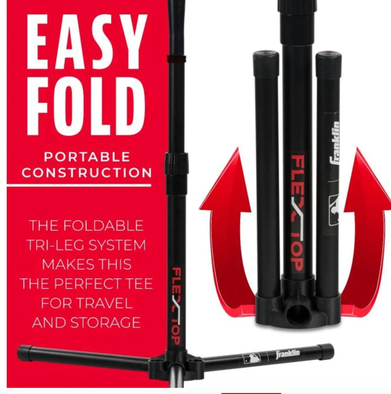 The Franklin MLB Flex Top Teeball Batting Tee 24954 is the perfect training tool for young players just starting out. Designed specifically for beginners, this teeball tee helps build confidence, improve swing mechanics, and refine body positioning. Featuring a unique "bounce back" rubber topper with a corded premium flex bungee, this tee absorbs impact and quickly returns to the upright position after each hit, making it ideal for repetitive practice. With its adjustable height from 22" to 31", the Flex Top Tee adapts as young players grow and develop. The sturdy, weighted tri-leg base provides stability, while the foldable design makes it easy to store and transport. Crafted with durable PVC material, this tee is built to withstand continuous use, ensuring it stays reliable through countless training sessions. The convenient twist and lock height adjustment ensures a secure and safe experience for young athletes ready to take their game to the next level.