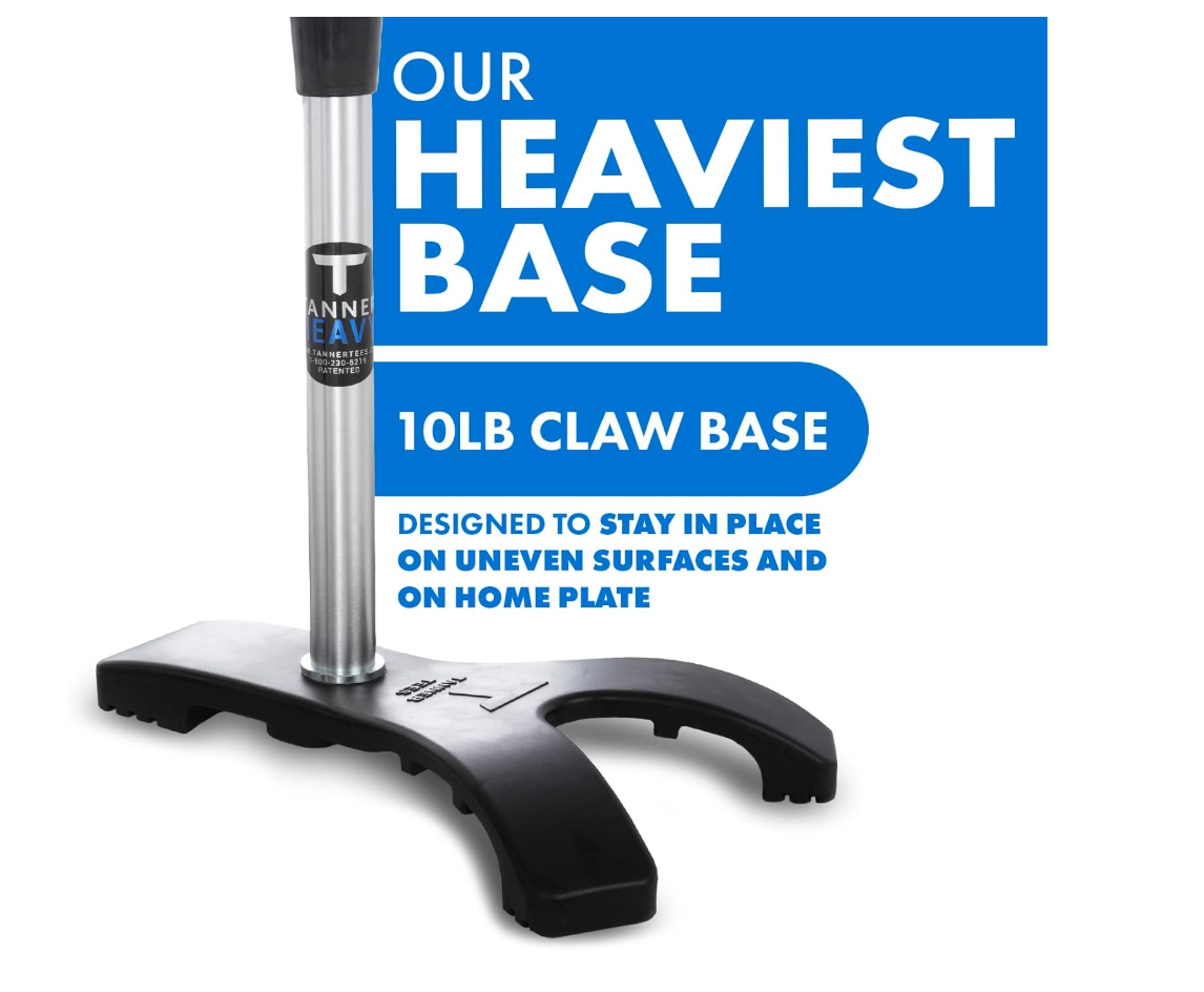 The Tanner Heavy Hitting/Batting Tee is built for durability and performance, making it the go-to training tool for players at any level. Crafted with a ten-pound claw base, this professional-quality tee offers unmatched stability on any surface, preventing tipping during practice. Its reinforced steel stem and adjustable height options make it suitable for baseball, softball, and slow-pitch training.