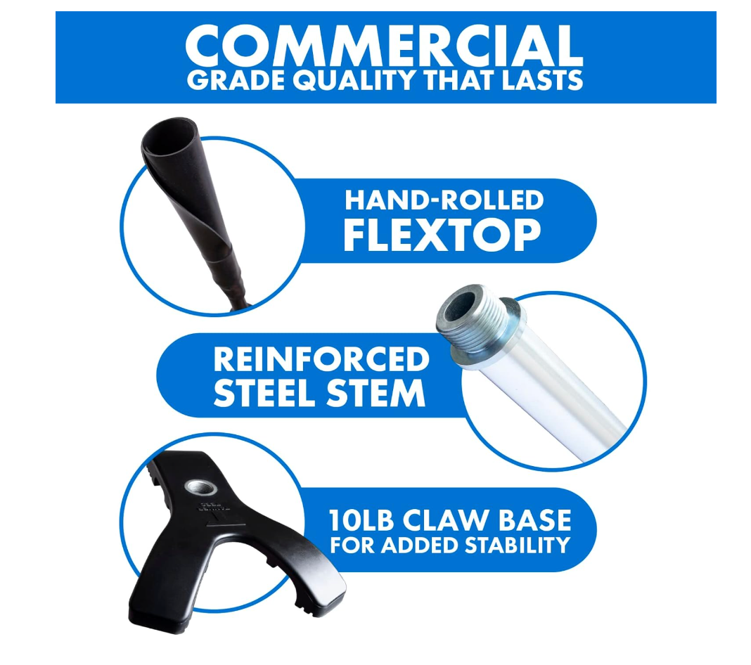 Weighted Claw Base: 10 lb base for exceptional stability on any surface, reducing tipping.