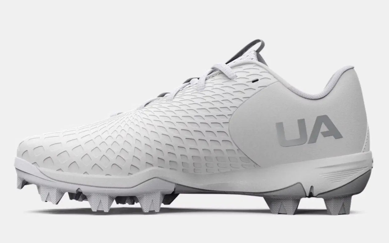 The Under Armour Women's Glyde 2 Molded Softball Cleats are engineered specifically for the unique shape of women’s feet, ensuring an optimized fit, traction, and game-ready performance. Featuring a lightweight textile upper and breathable toe box, these cleats offer a sneaker-like feel while maintaining durability. The TPU toe cap adds protection where it's needed most, and the molded heel enhances comfort and provides a secure lockdown for confident play. With rubber molded cleats designed for aggressive traction, these cleats ensure stability on all surfaces without sacrificing comfort. Lace up and dominate the field with the Under Armour Glyde 2 Softball Cleats.
