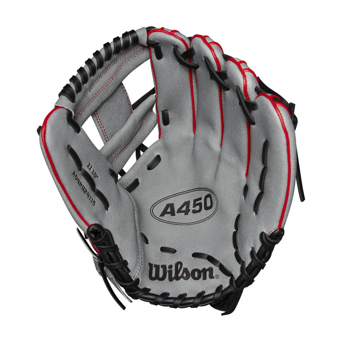 The Wilson A450 11 1/2" Youth Baseball Glove WBW101474115 is crafted to help young players enhance their skills on the diamond. With its 11.5-inch length and iconic H-Web design, this glove is perfect for infield positions, providing excellent ball control and quick transfers. Made from top-grain leather, it offers a game-ready feel and durability, making it an ideal choice for youth athletes just starting out or looking to refine their game.